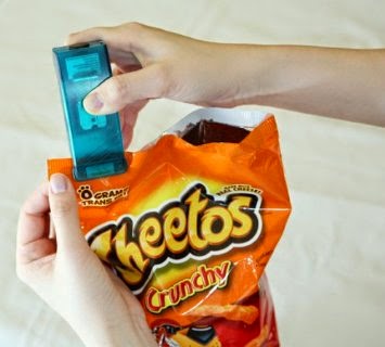 This gadget allows you to re-seal open bags of food, such as chip bags. They can save lots of much on storage bags as you are able to store food in their original packaging. These keeps food fresh longer than clips. There are several versions of the Bag Re-sealer available, including this one from iTouchless.