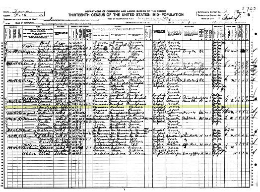 | 1910 census image from Ancestry, showing Amelia Earhart as a young girl in Iowa. |